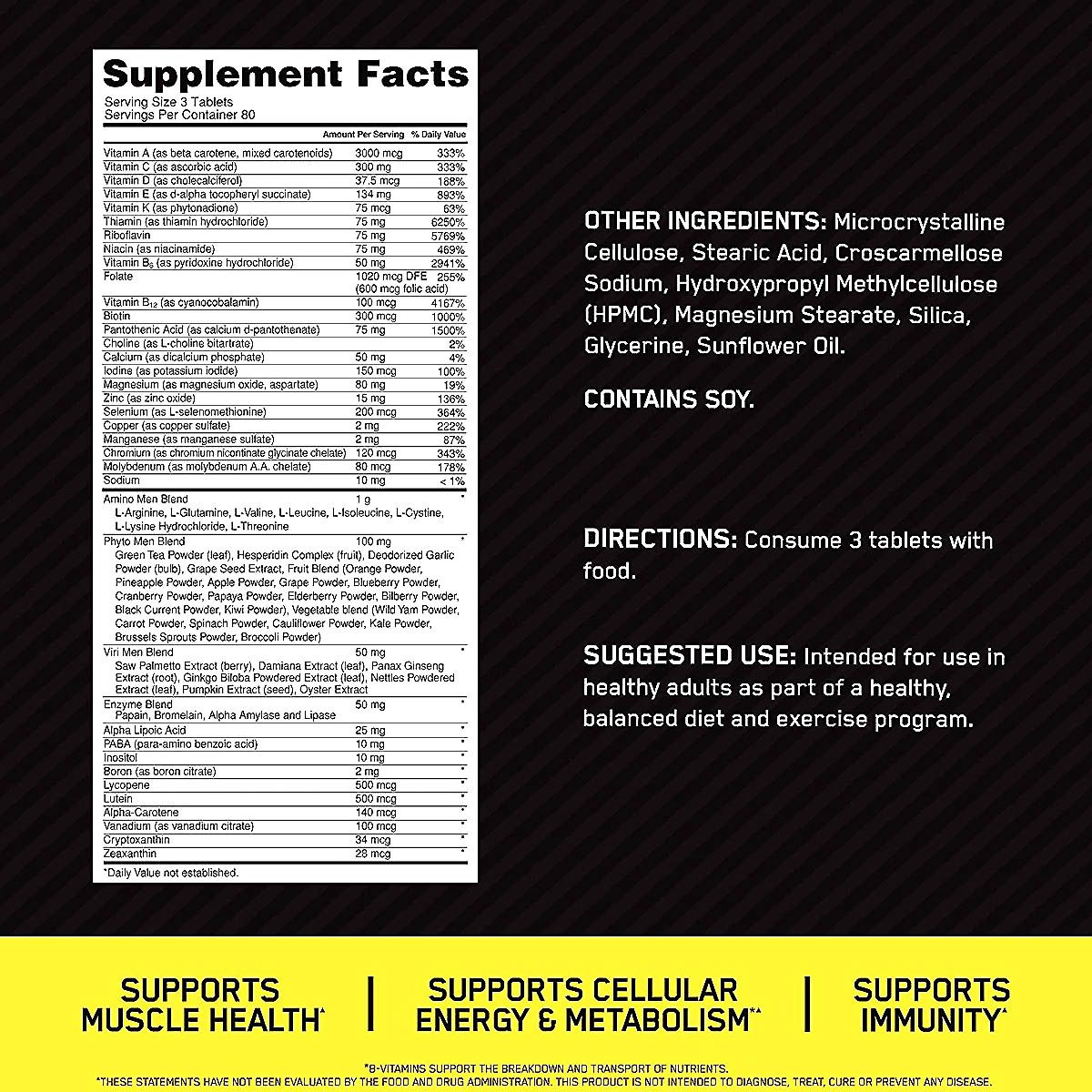 | CalVitamin | Active Men’s High Potency Multivitamin with 75 Ingredients | 3 Tablets | Tablets | 240 Tablets (80 Servings) |