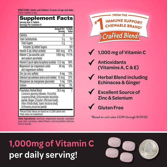 | Airborne | Vitamin C 1000mg Very Berry Immune Support | 4 Tablets | Chewable Tablets | 32 Tablets |