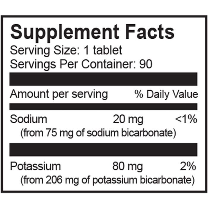 | Potassium (from 206 mg potassium bicarbonate) | 80 mg | 2% |