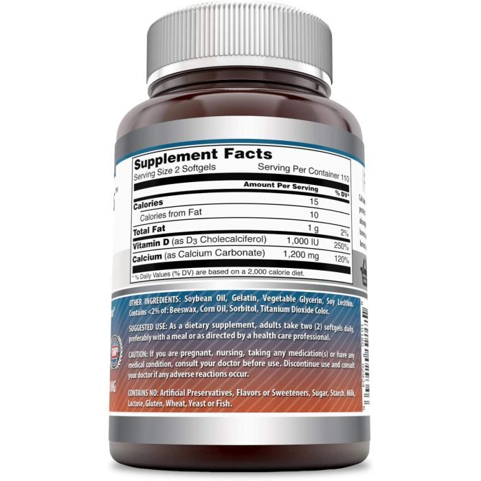 Boost bone and immune health with Amazing Formulas Calcium with Vitamin D3. Each serving provides 1200 mg Calcium and 1000 IU Vitamin D3 for strong bones, teeth, and muscles. Free from artificial preservatives, gluten, lactose, and fish. Ideal for adults seeking daily support. 220 softgels per bottle.