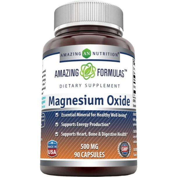 Amazing Formulas Magnesium Oxide 500 mg Capsules provide a high-quality source of magnesium to support digestive health and overall wellness. Each capsule contains 500 mg of magnesium oxide, contributing to vital bodily functions including muscle relaxation, nerve function, and electrolyte balance.