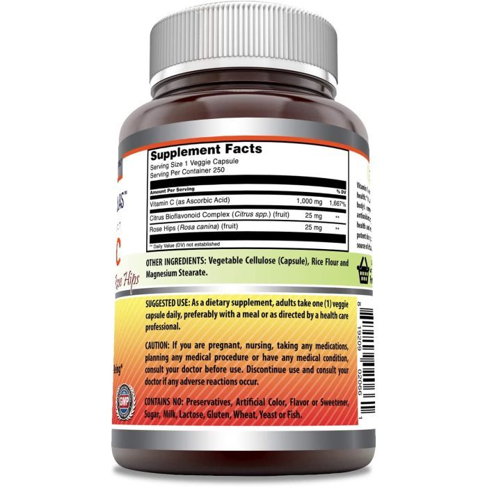 | Amazing Formulas | Vitamin C with Citrus Bioflavonoids & Rose Hips | 1 Veggie Capsule | Veggie Capsules | 250 Veggie Capsules |