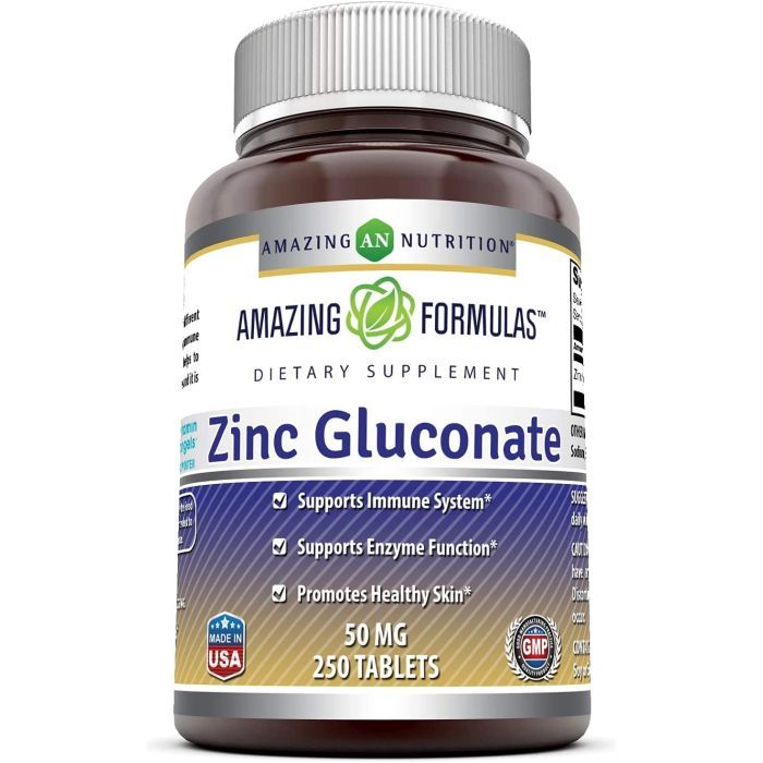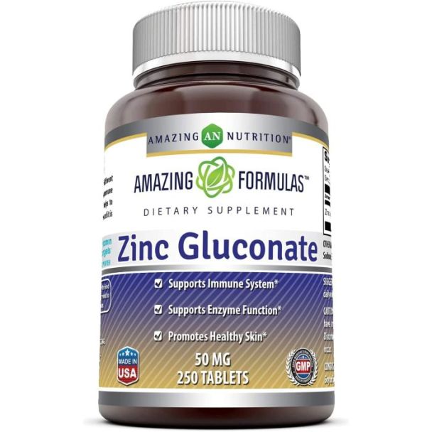 Amazing Formulas Zinc Gluconate 50 mg Tablets deliver potent immune support with 250 tablets per bottle, free from gluten and common allergens for sensitive diets.