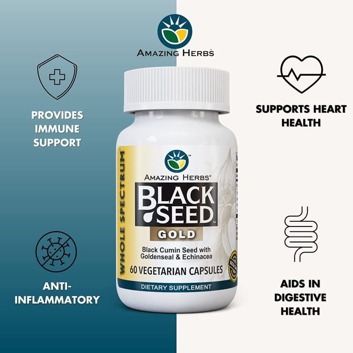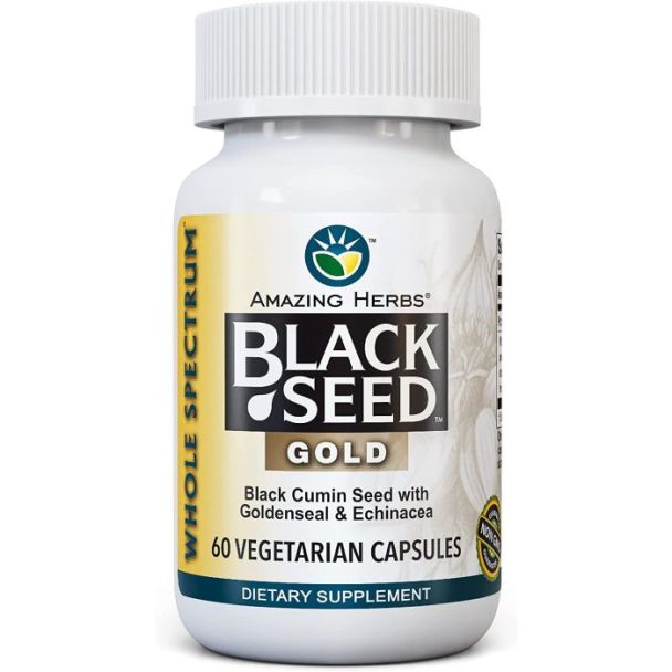 | Amazing Herbs Black Seed Gold – Black Cumin Seed with Goldenseal & Echinacea | 60 Veggie Caps | 1 capsule per day, or as directed by a healthcare professional |
