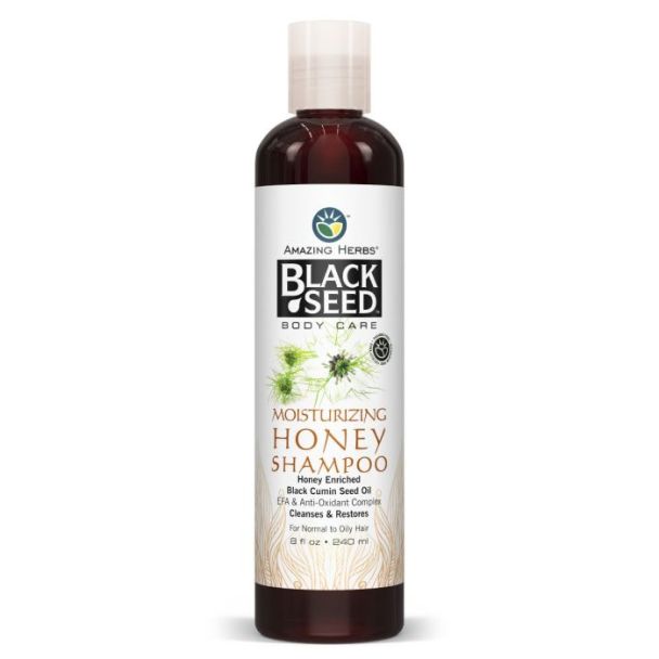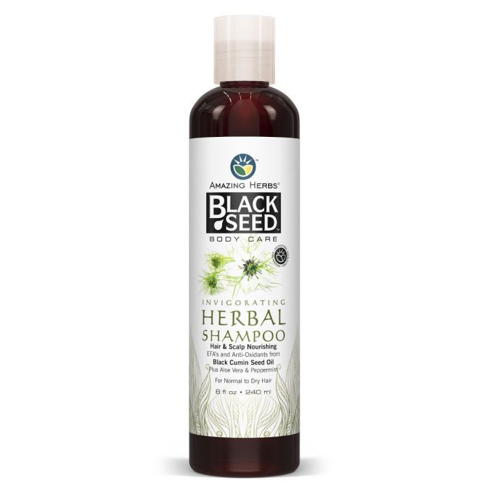 Amazing Herbs Body Care Black Seed Shampoo is a gentle, sulfate-free 8 oz shampoo enriched with cold-pressed black seed oil to nourish scalp and promote healthy hair.