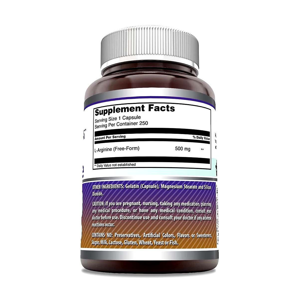 - Each capsule provides 500mg of free-form L-Arginine