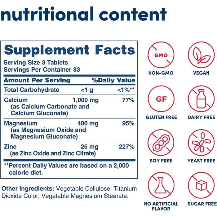 Take 3 tablets daily, preferably with meals, to maximize absorption. Suitable for adults looking to support bone health, muscle function, and immune wellness.