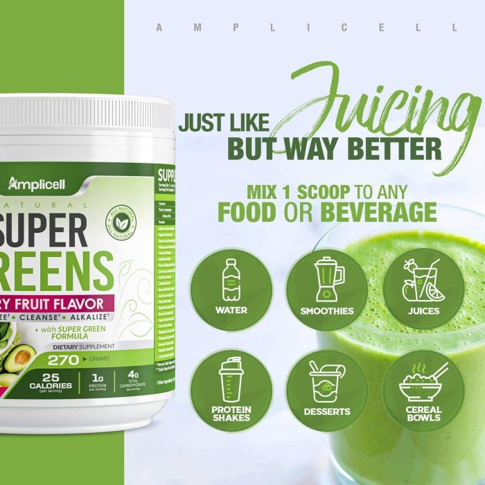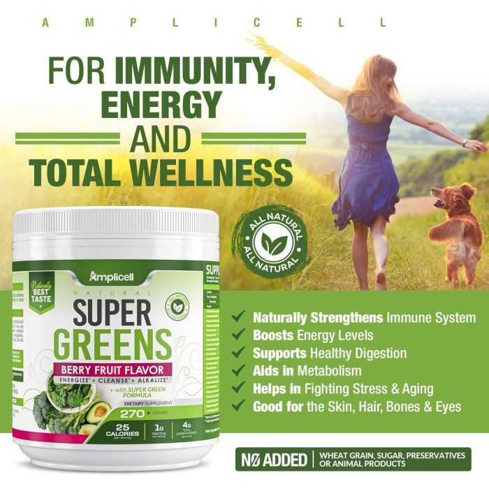 Boost daily energy with Amplicell Super Greens Extract Formula.