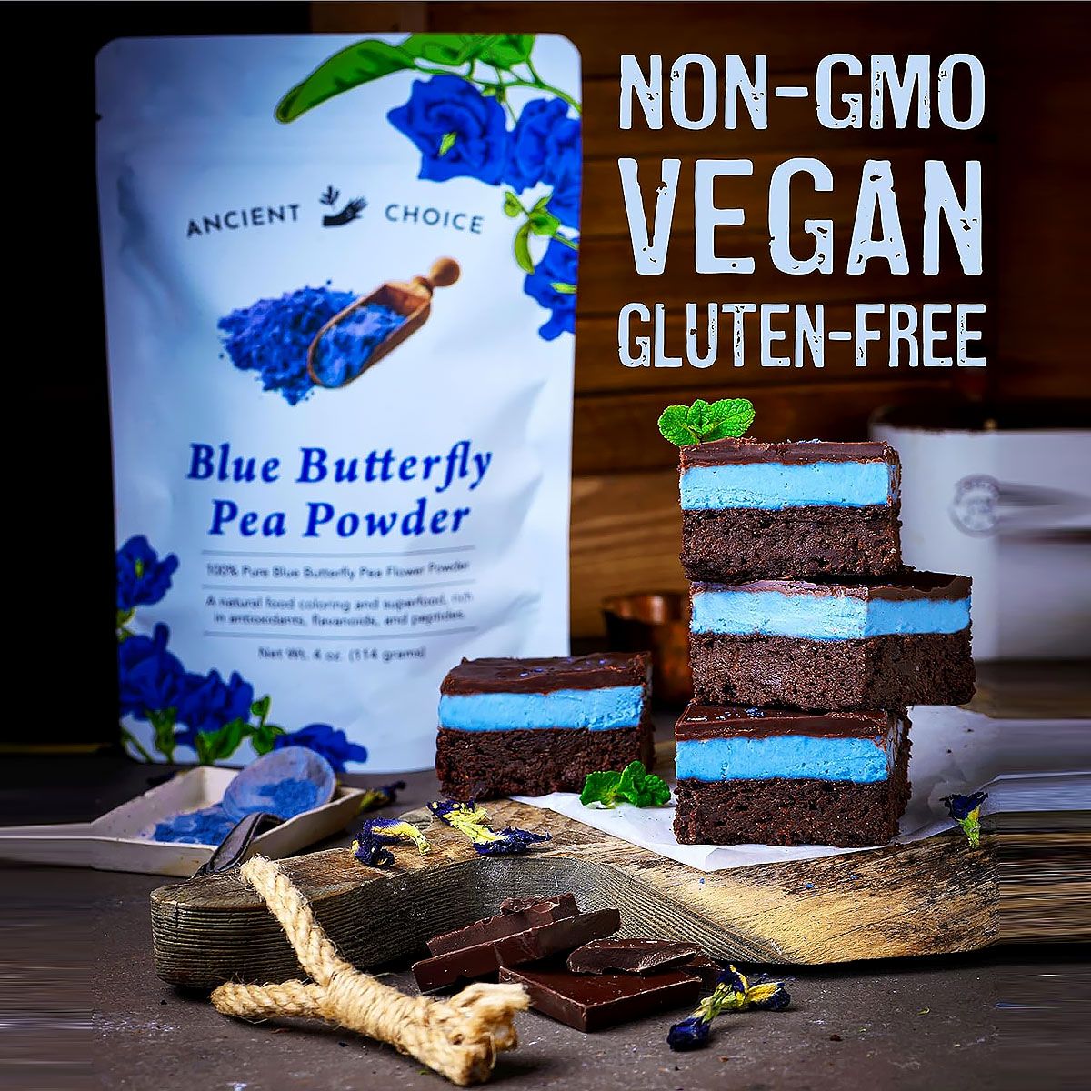 Experience the vibrant power of Ancient Choice Butterfly Pea Flower Powder, a natural superfood and food coloring rich in antioxidants, flavonoids, and peptides. Known for its stunning deep blue color, this powder offers both wellness and creativity in your kitchen.