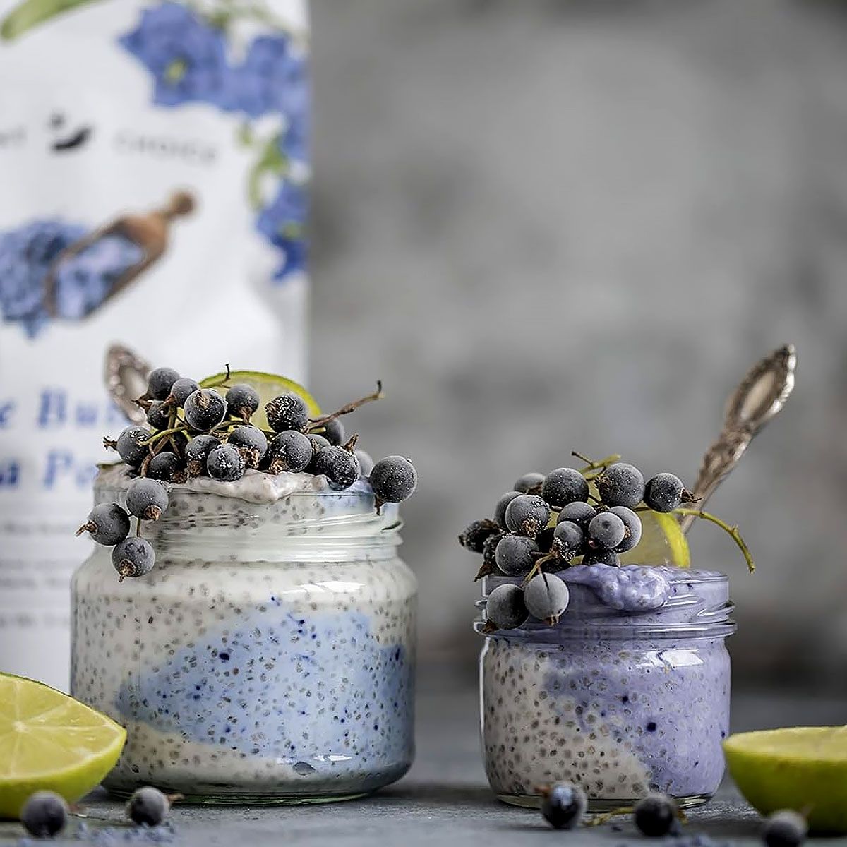 Butterfly Pea Flower Powder: Naturally rich in antioxidants, flavonoids, and peptides, which support brain function, stress relief, and healthy skin.