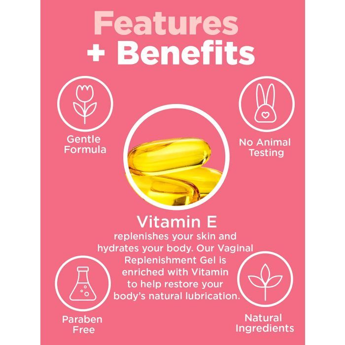 At Last Naturals Plant-Based Vaginal Replenishment Gel with Vitamin E is a gentle, non-irritating gel designed to restore natural moisture and support hormonal balance, providing relief from vaginal dryness.