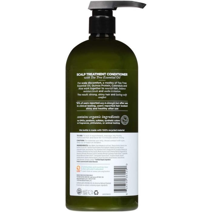 Avalon Organics Scalp Treatment Tea Tree Conditioner is a vegan and cruelty-free formula designed to soothe and nourish the scalp while restoring softness and shine to hair. Infused with tea tree essential oil, aloe, quinoa protein, and calendula extract, this conditioner helps balance scalp moisture and promotes a healthy environment for hair growth.
