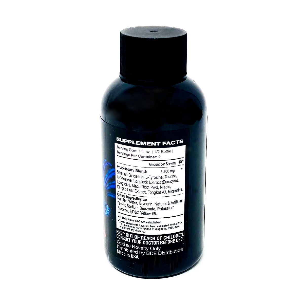 A 1 fl. oz. serving (half the bottle) of Big Dick Energy contains a proprietary blend totaling 3,500 mg. Key components are Siberian Ginseng, L-Tyrosine, Taurine, L-Citrulline, and Maca Root Powder, combined to support stamina and vitality.
