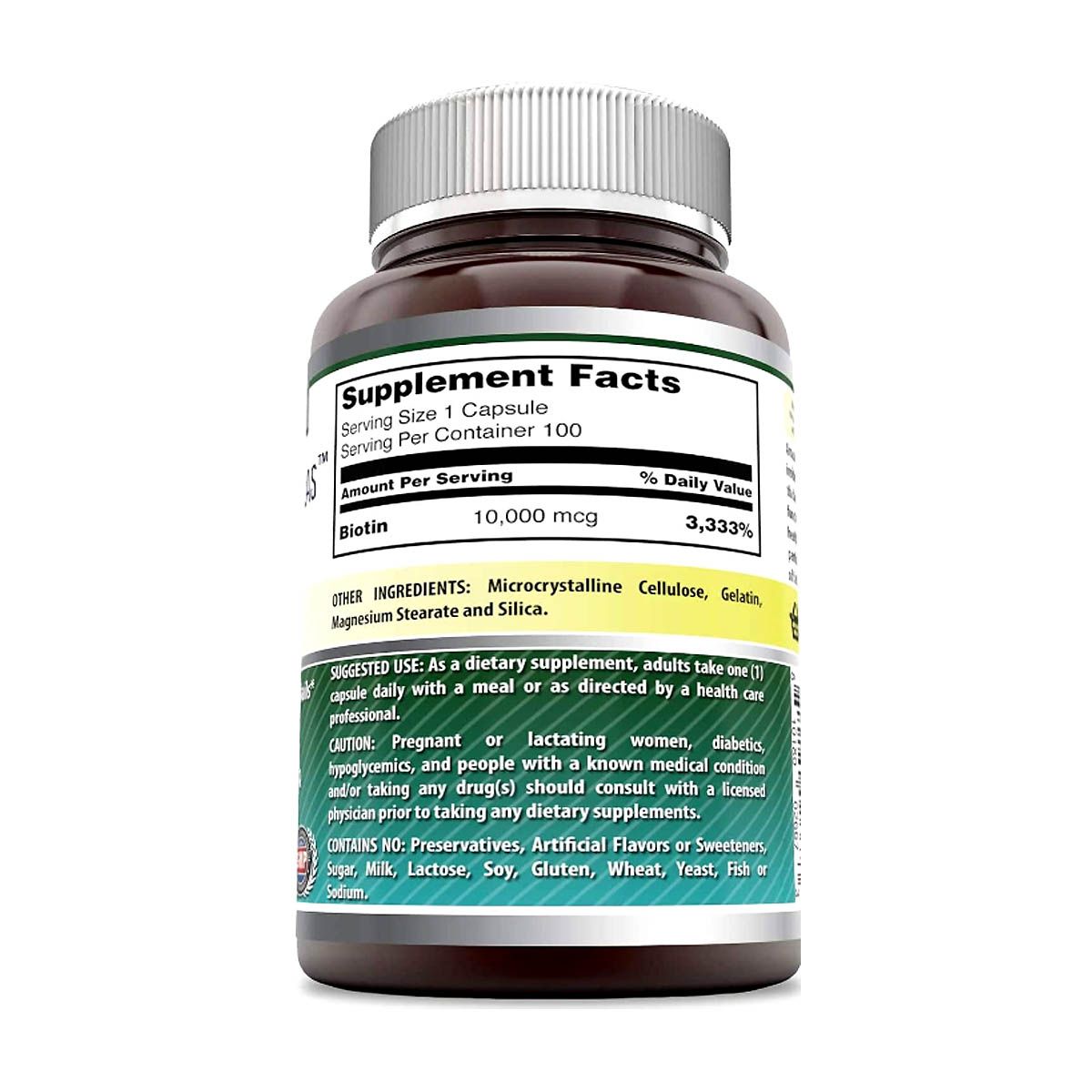 | Biotin – 10,000 mcg | 3,333% |