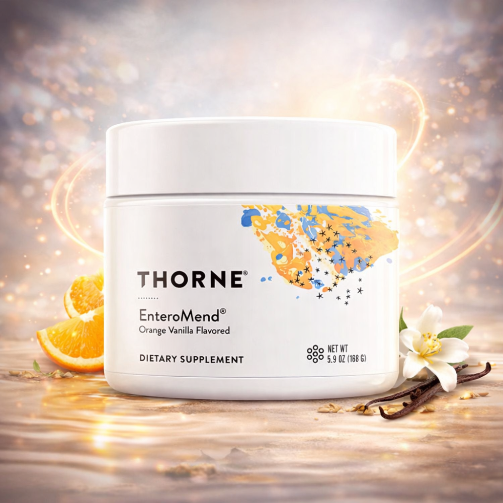 Thorne EnteroMend Orange Vanilla is a thoughtfully formulated gut health supplement created to support intestinal integrity and digestive comfort as part of a daily wellness routine. This powder-based dietary supplement combines key nutrients often used in digestive support protocols and is ideal for individuals looking to maintain a healthy gut barrier and overall digestive balance.