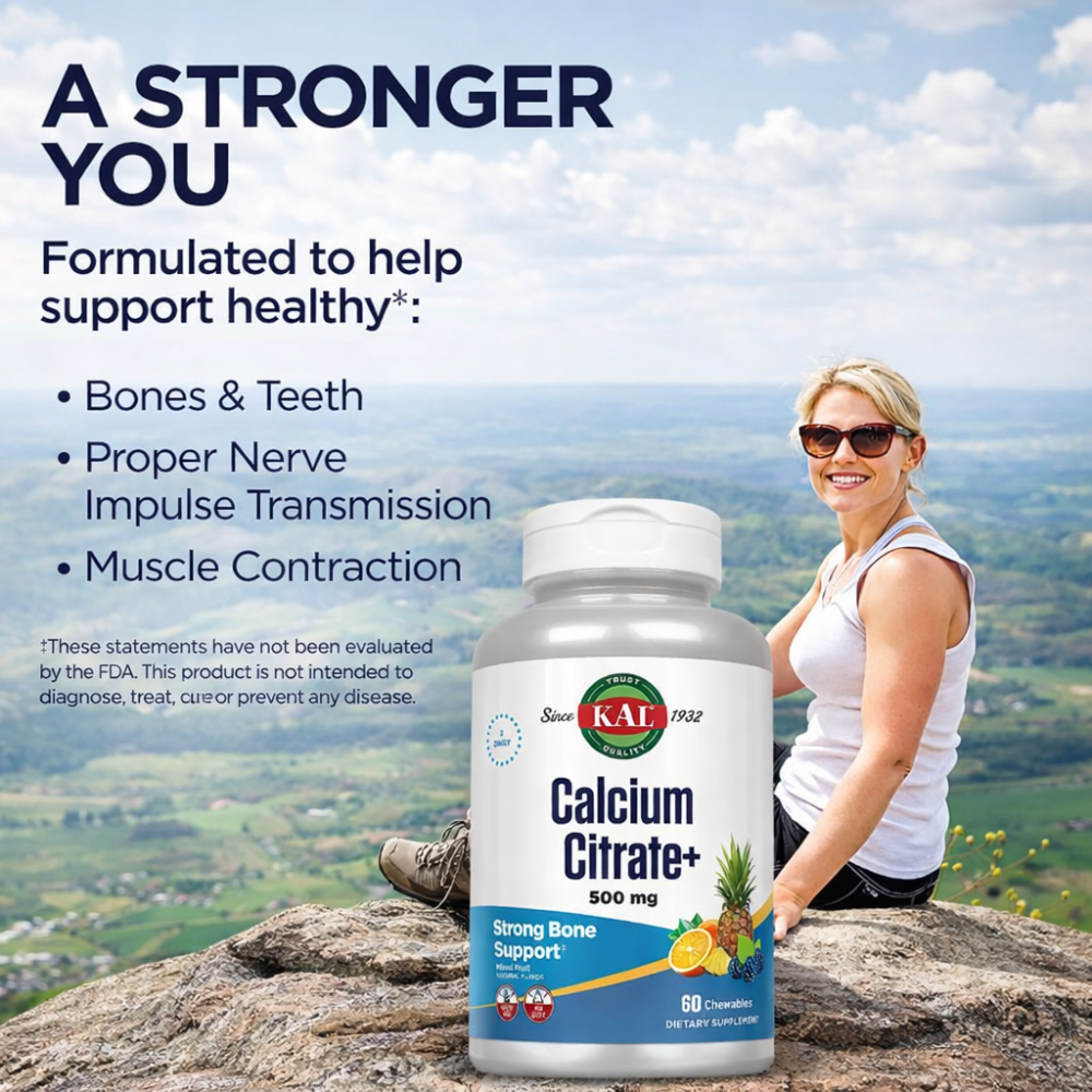 KAL High-Potency Calcium Citrate Chewables 500mg stand out for combining a well-absorbed calcium form with a chewable format that fits easily into a daily wellness routine. The balanced inclusion of magnesium and vitamin D supports overall mineral synergy. Many users also appreciate the mixed fruit flavor, which helps maintain consistency without adding another capsule to the day.