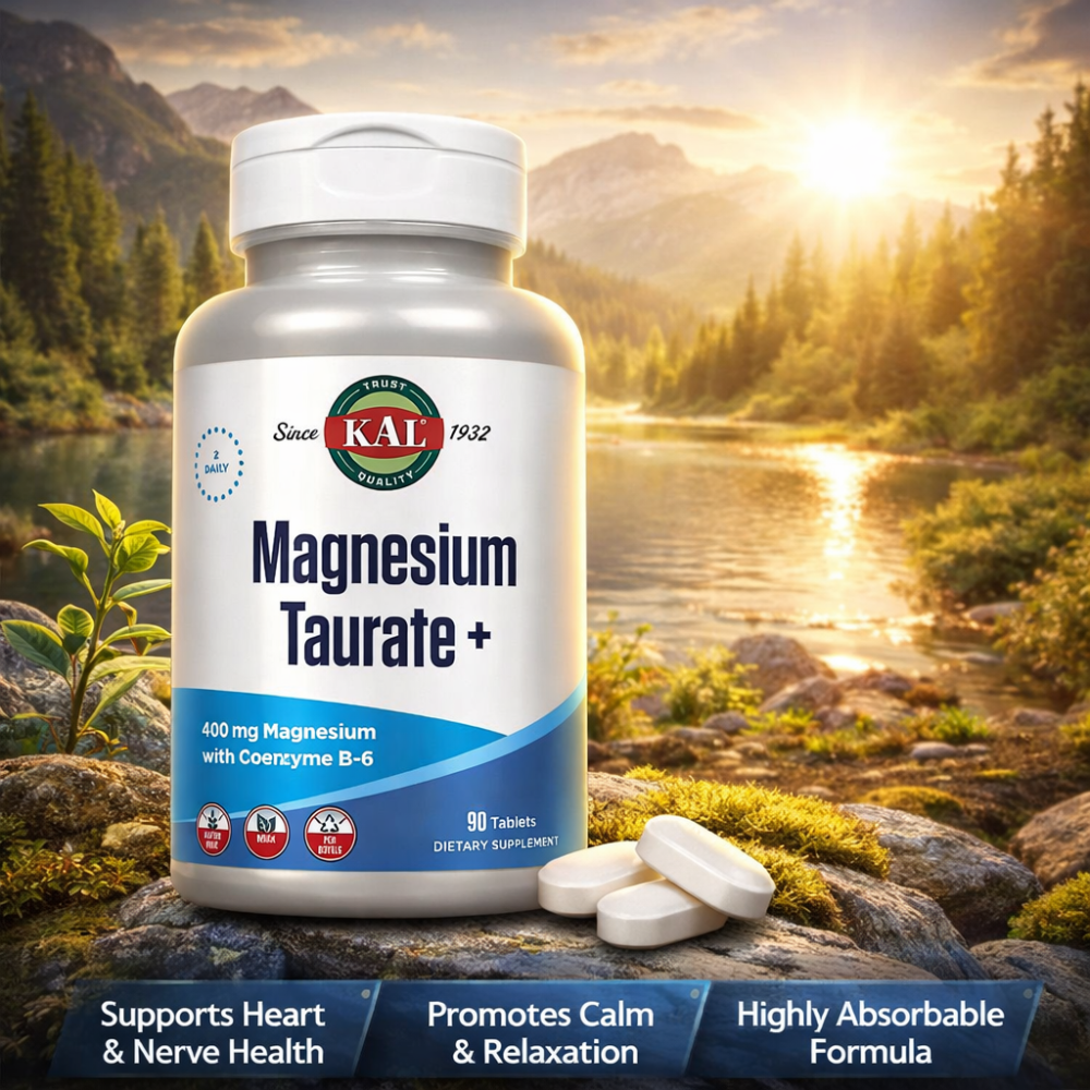 Take two KAL Magnesium Taurate Plus tablets daily with meals or as directed. This magnesium taurate dosage fits well into a daily wellness routine. Many users add KAL Magnesium Taurate Plus from CalVitamin to support heart and muscle function consistently.