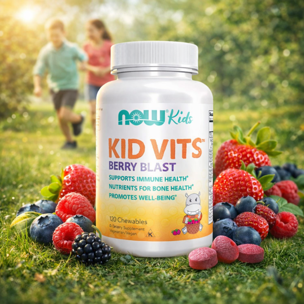 NOW Kid Vits Berry Blast Immune Support is a chewable multivitamin created for children who need consistent nutritional support in a fun, easy-to-take format. This vitamin supplement helps support immune health, bone development, and overall daily wellness, making it suitable for growing kids with active routines. Parents often choose berry-flavored chewables to simplify a daily wellness routine without relying on capsules or gummies.