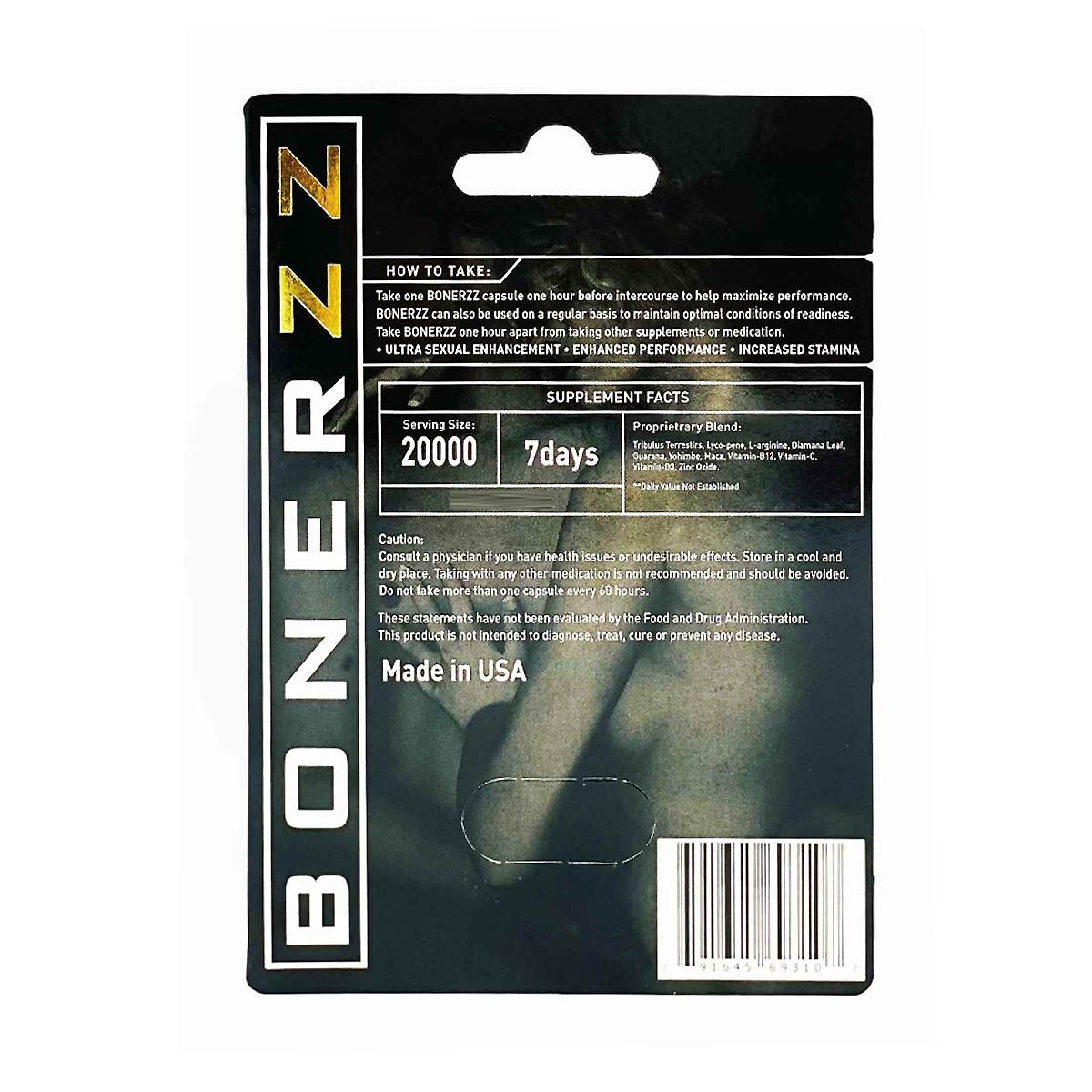 The statements about BONERZZ Men Sexual Enhancer Ultra-Potent 7-Day and its effects have not been evaluated by the Food and Drug Administration. This product is not designed to diagnose, treat, cure, or prevent any diseases.