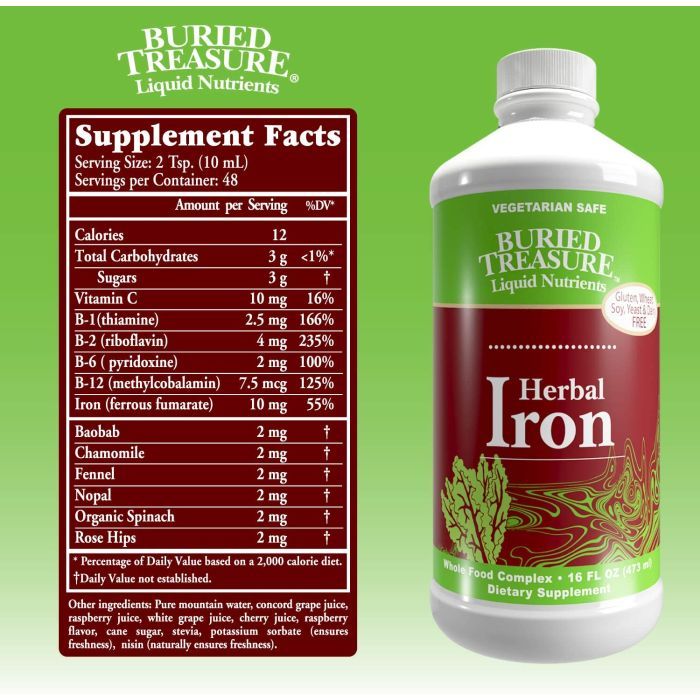 Herbal Iron Supplement 16 Oz Gluten Free Buried Treasure