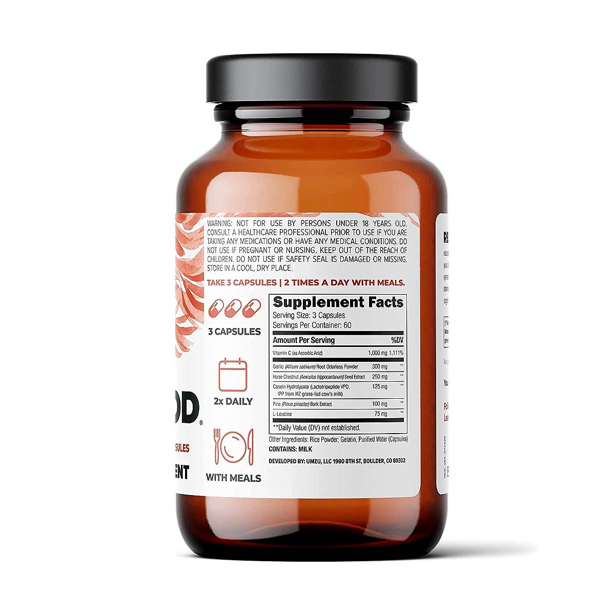 Hero Ingredients: Vitamin C, Garlic Extract, Horse Chestnut, Pine Bark Extract, and Casein Hydrolysate deliver synergistic support for vascular health.
