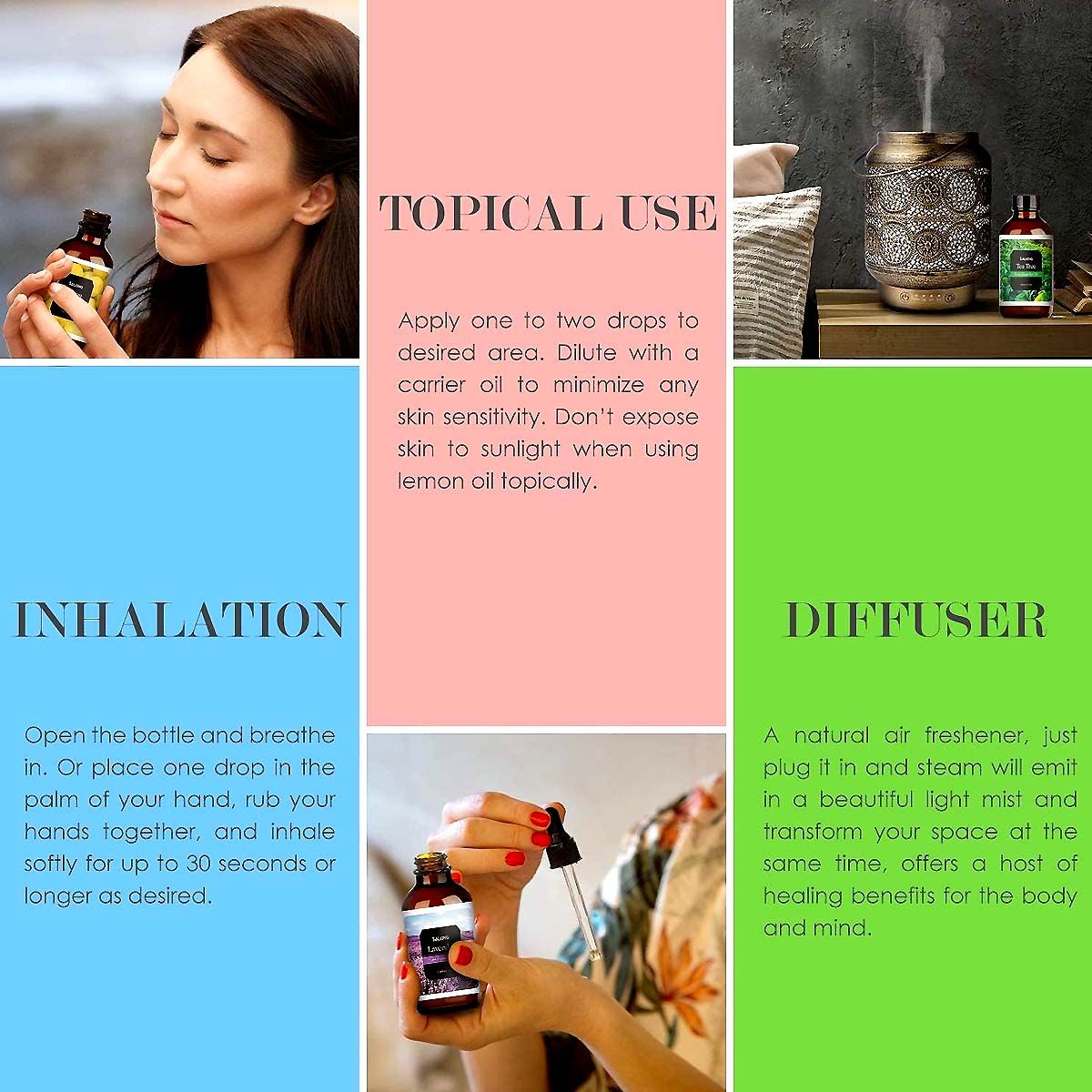 For diffusion, add a few drops to water in your chosen diffuser. Integrate into candles, soaps, or personal care items as desired. Dilute with a carrier oil for topical applications.