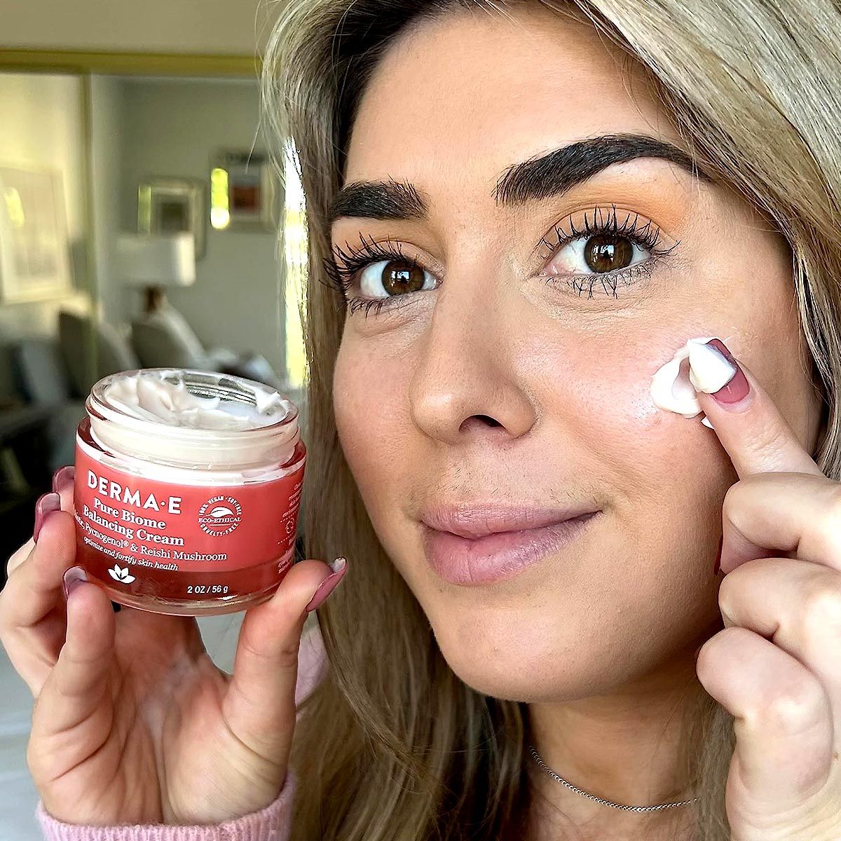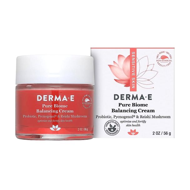 - Derma E Pure Biome Balancing Cream is crafted with probiotics, reishi mushroom, and pyconogenol to optimize and fortify skin health. Perfect for calming redness and inflammation, this cream supports a balanced skin microbiome and is ideal for sensitive skin types, ensuring a smooth, healthy complexion.