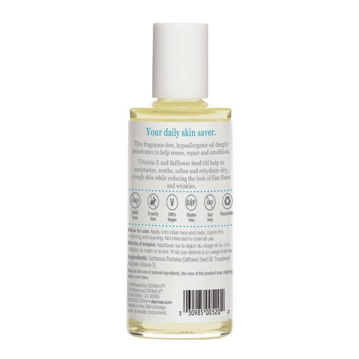 Derma-E Vitamin E Skin Oil 14,000 IU with Safflower Seed Oil is a fragrance-free, hypoallergenic oil designed to deeply penetrate and nourish dry, rough skin. Enriched with antioxidant-rich Vitamin E and moisturizing Safflower Seed Oil, this formula helps reduce the appearance of fine lines, hydrate parched skin, and restore a radiant glow. This eco-ethical skincare essential is 100% vegan, cruelty-free, gluten-free, GMO-free, and soy-free—making it suitable for even the most sensitive skin types.