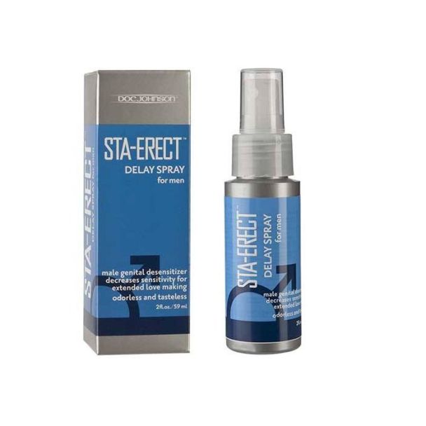 Doc Johnson Sta-Erect Stay Hard Delay Spray is a male genital desensitizer designed to decrease sensitivity and help delay premature ejaculation. This odorless and tasteless spray contains 7.5% Lidocaine, providing effective desensitization for extended love-making sessions.