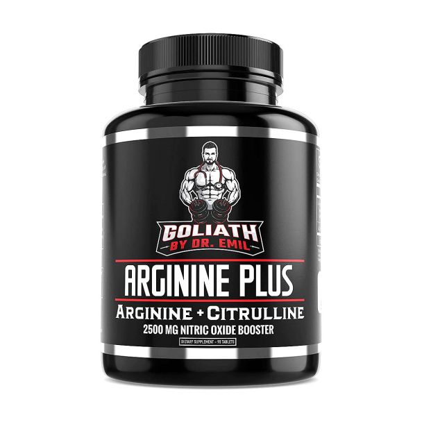 Dr. Emil Goliath Arginine Plus Nitric Oxide Booster combines two powerful amino acids to optimize nitric oxide production and cardiovascular health.