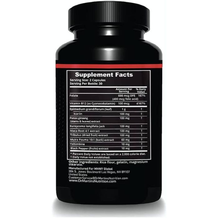 - Horny Goat Weed Extract (Epimedium sagittatum): Traditionally used to enhance libido and energy levels.