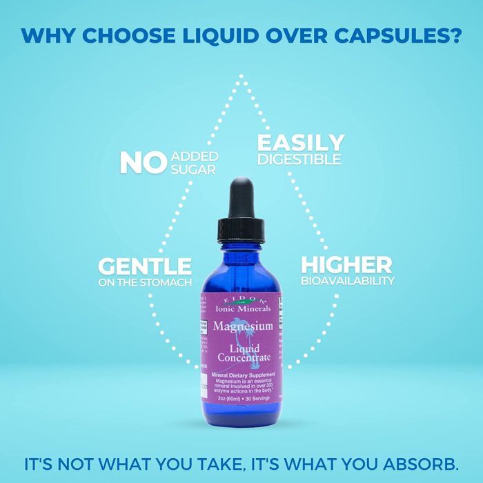 A: Ionic magnesium helps relax muscles, support nerves, and promote a healthy heart, which Eidon Magnesium Liquid Concentrate delivers effectively.