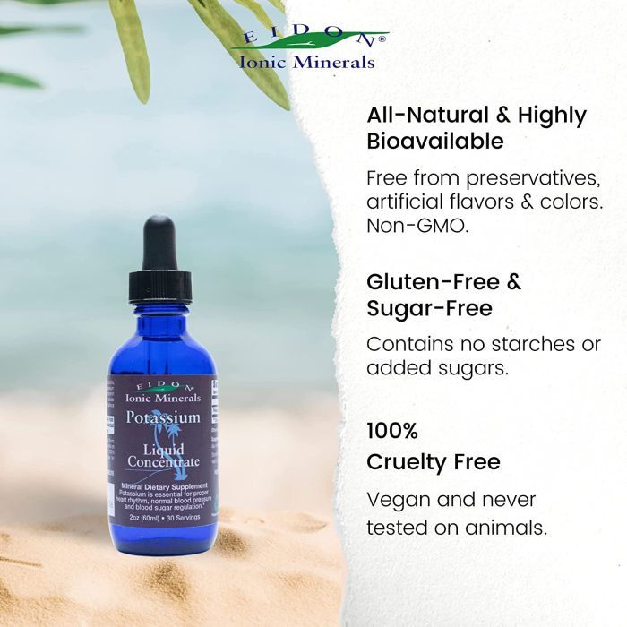 This Eidon Ionic Minerals Liquid Concentrate Potassium Supplement supports overall vitality by aiding muscle contraction and nerve impulse transmission, making it a valuable addition to daily mineral supplementation. The product name is mentioned 3–5 times for SEO purposes.