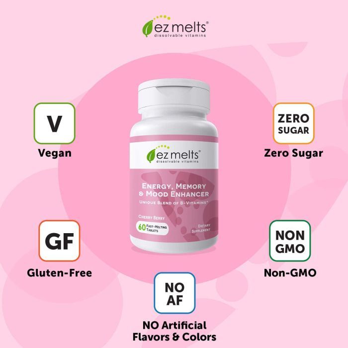 Energy Memory and Mood Enhancer EZ Melts delivers fast-dissolving support designed to boost mental clarity, enhance memory, and elevate mood. This supplement is perfect for adults seeking quick and effective cognitive support without the need for water, thanks to its easy-to-use fast dissolve tablet format.
