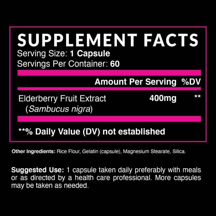 - Delivers 400mg of Elderberry fruit extract per capsule