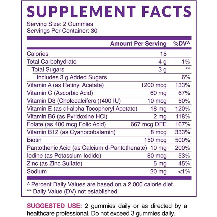 Take two (2) gummies daily, ideally with a meal for better absorption. They may be taken with or without food, but pairing with breakfast or lunch can enhance nutrient uptake.