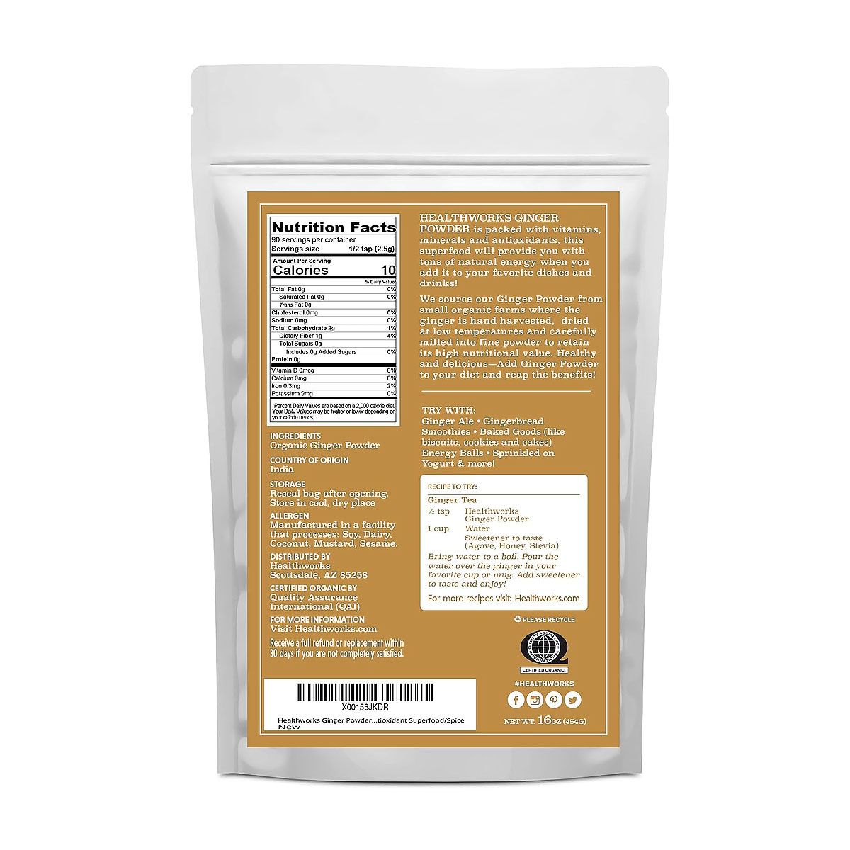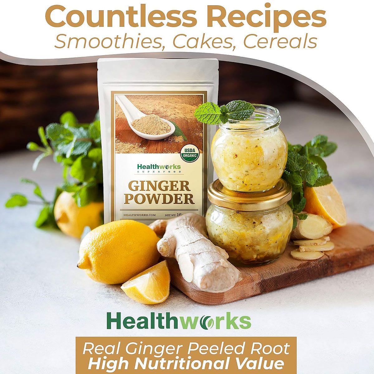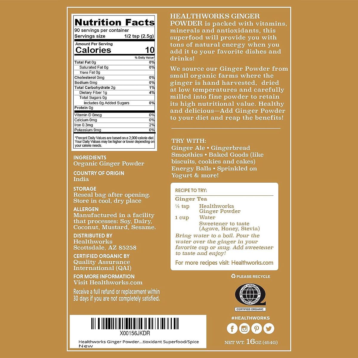 | Healthworks | Organic Ginger Powder | 1/2 tsp (2.5g) | Powder | 16 oz (1 lb) |