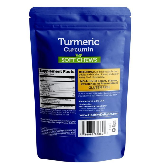 Healthy Delights Turmeric Curcumin 30 Soft Chews Natural Ingredients