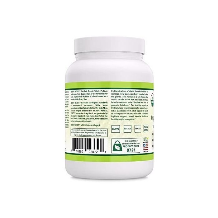 Herbal Secrets Organic Whole Psyllium Husk contains pure, organic psyllium husk which is rich in soluble fiber.