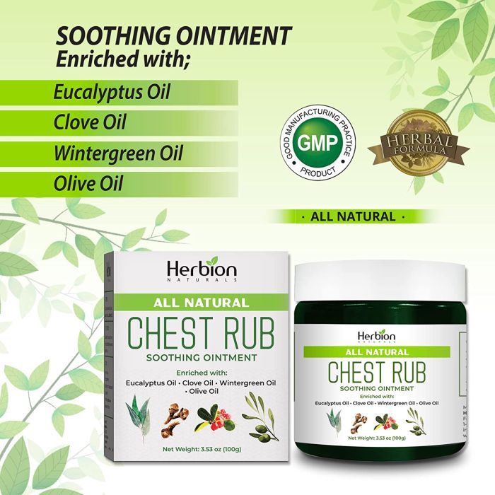 The Herbion Naturals Chest Rub Soothing Ointment contains key active ingredients: