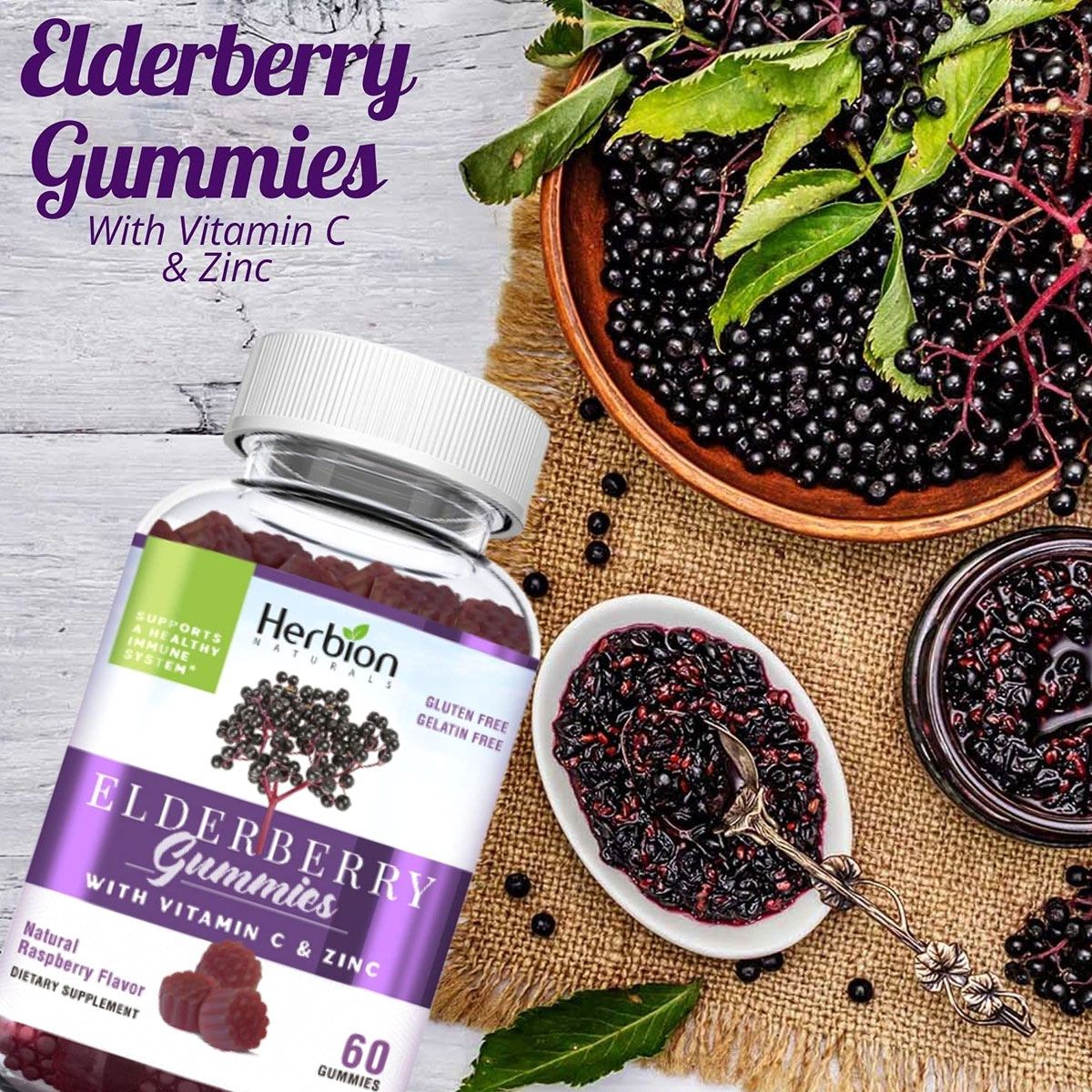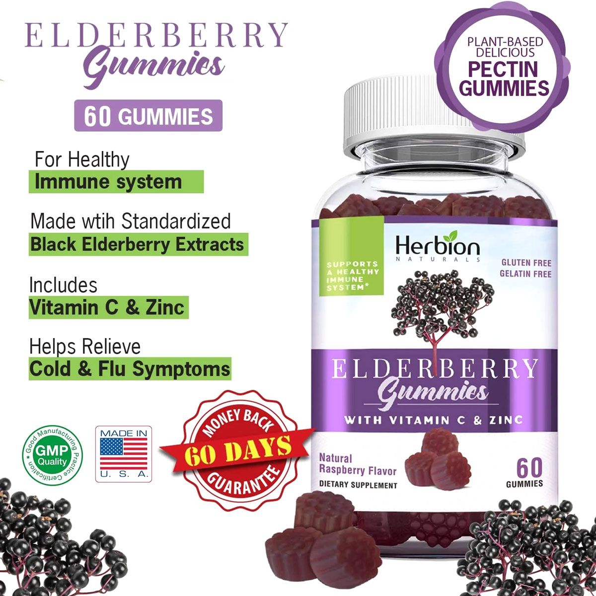 Herbion Naturals Elderberry 60 Gummies Vitamin C Zinc Immune Support