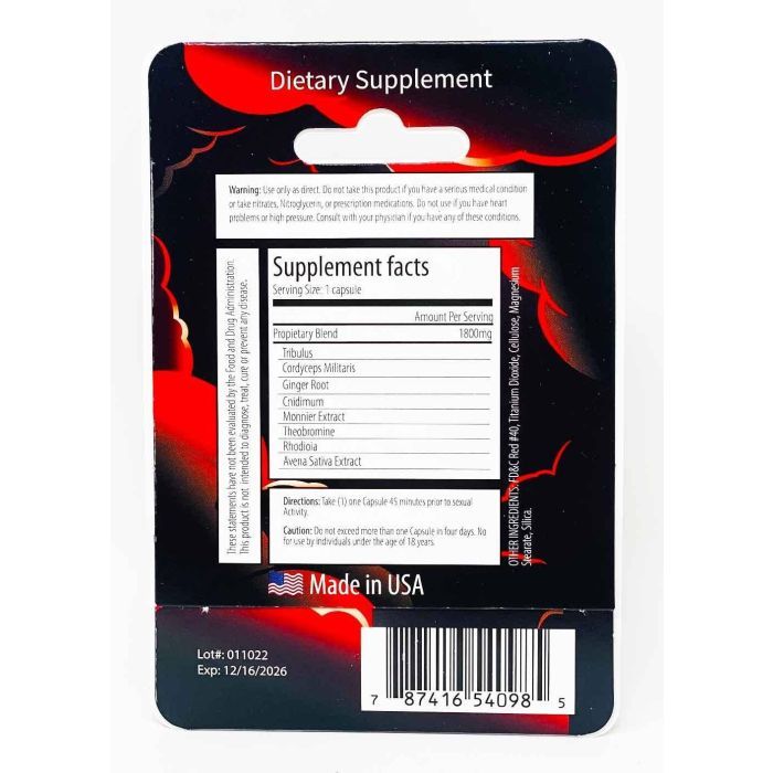 Hercules 1800 Male Enhancement Red Pill is a potent supplement formulated to support male sexual health and vitality. Featuring a proprietary blend of Tribulus, Cordyceps Militaris, Ginger Root, Cnidium, Monnier Extract, Theobromine, Rhodiola, and Avena Sativa Extract, this formula promotes increased stamina, libido, and overall performance.