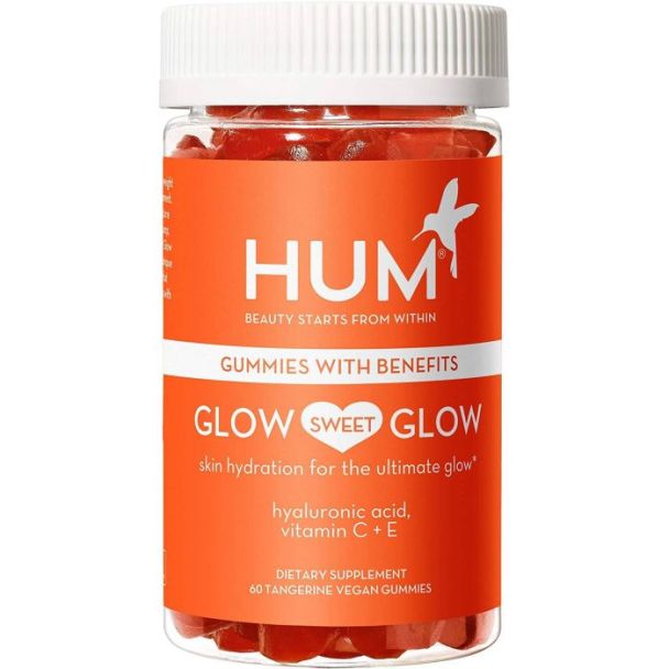 Hum Glow Sweet Glow Vegan Gummies hydrate skin naturally.