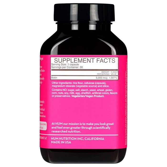Hum Killer Nails Vegan Biotin Supplement is expertly crafted to strengthen and beautify your nails. With a potent 5,000 mcg of biotin per capsule, this vegan formula supports nail growth and reduces brittleness, helping you achieve healthy, resilient nails.