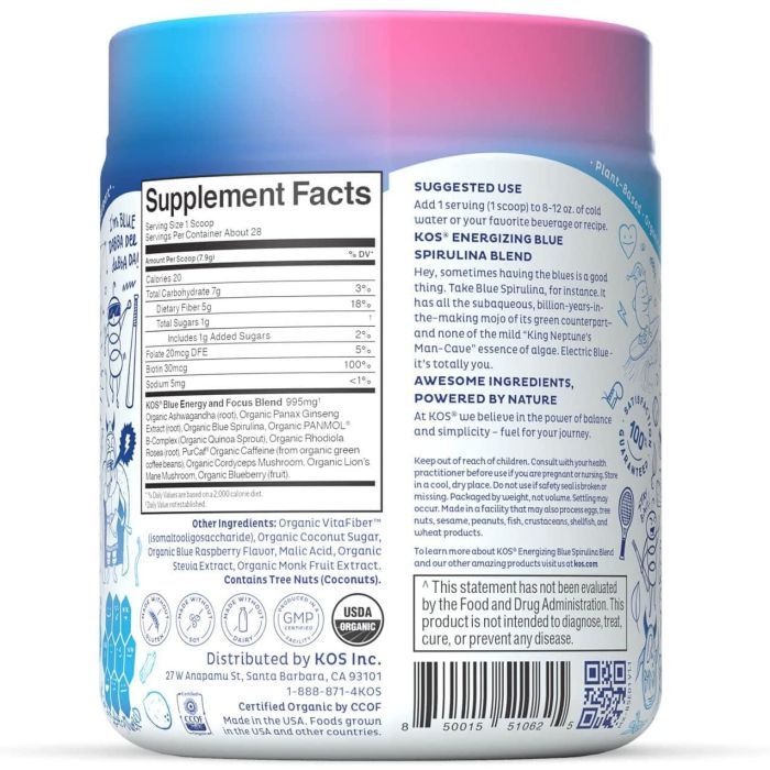 | KOS | Bolt From The Blue Spirulina Blend | 1 Scoop (7.9 g) | Powder | 7.8 oz (221 g) |