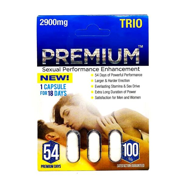- Premium Trio 2900mg is an advanced sexual performance enhancer designed to significantly improve stamina and erection quality for up to 18 days. This powerful formula contains Cordyceps Sinensis, L-Arginine, Maca Root, and a blend of other potent herbs known for their effectiveness in sexual health.