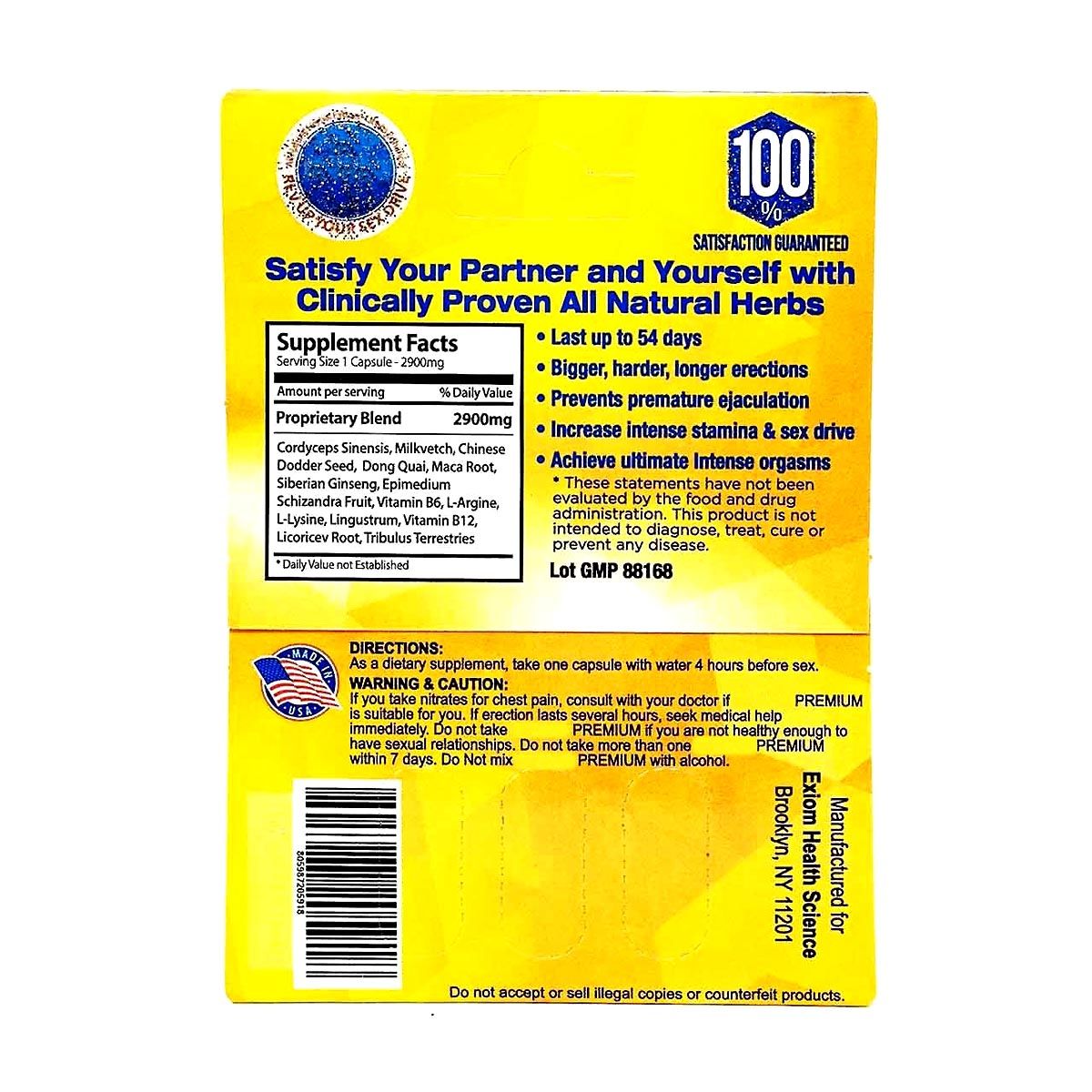 - Each capsule provides up to 18 days of sexual enhancement.