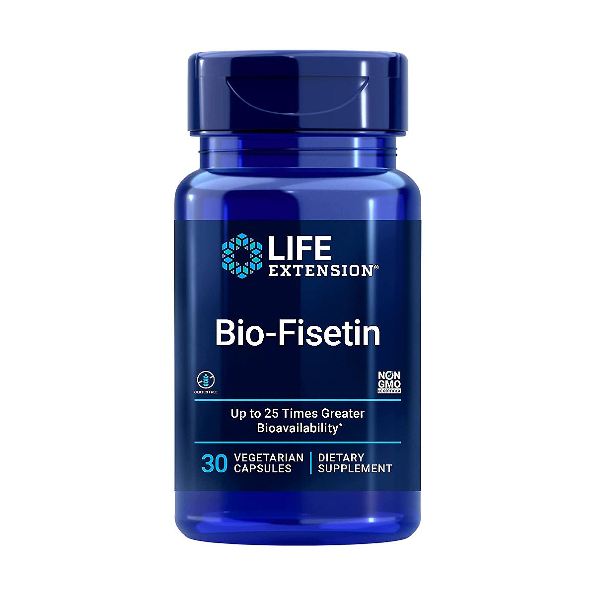 Life Extension Bio-Fisetin 25x Bioavailability delivers advanced antioxidant and healthy aging support in a vegetarian capsule. Powered by a unique proprietary blend of fisetin, galactomannans, and fenugreek seed extract, this supplement helps support cellular health, memory, and healthy inflammatory response.