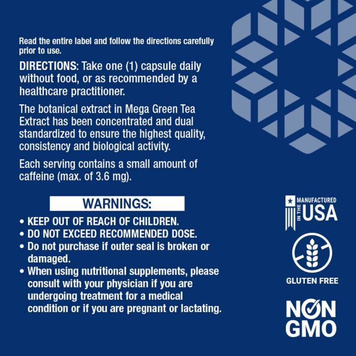 Life Extension Decaffeinated Mega Green Tea Extract contains: