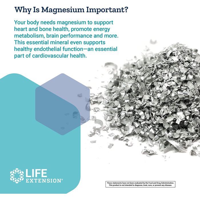 Life Extension Extend-Release Magnesium 60 Vegetarian Caps offers a six-hour dual-release formula combining fast-uptake magnesium citrate with sustained-release magnesium oxide to support over 300 biochemical reactions that maintain healthy heart function, strong bones, and balanced nerve and muscle activity. Certified gluten-free, non-GMO, and produced in GMP-certified facilities, Life Extension Extend-Release Magnesium is crafted for adults whose diets fall short in magnesium. Whether you’re a busy professional, athlete, or wellness seeker, Life Extension Extend-Release Magnesium 60 Vegetarian Caps helps you maximize magnesium’s full range of benefits—day and night.